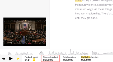 - Highlight the text and you will be able to see the timecode at the start and end of the highlighted section.